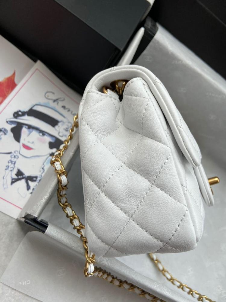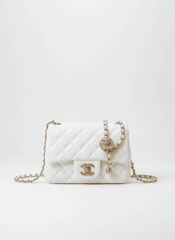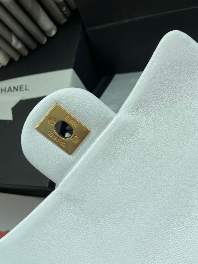 حقيبة شانيل باريس مستوحى من جلد الأبيض بالقفل الذهبي تألّقي بأرقى إطلالة مع حقيبة شانيل البيضاء التي تجمع بين الفخامة الفرنسية والتصميم الكلاسيكي، لتكون القطعة المثالية لكل مناسبة.