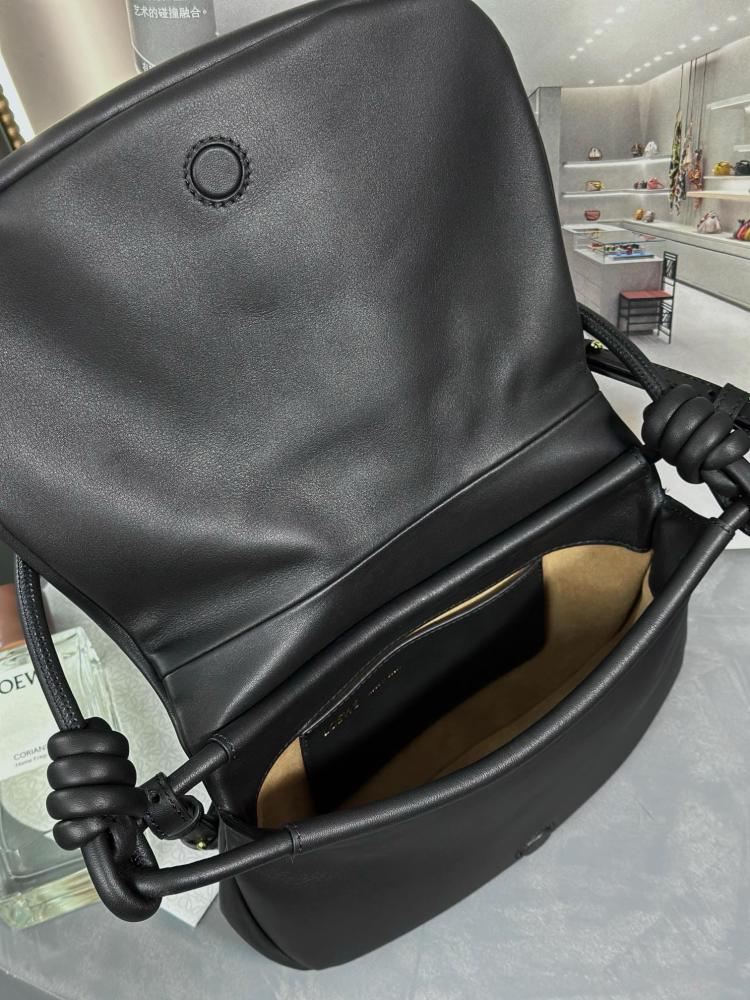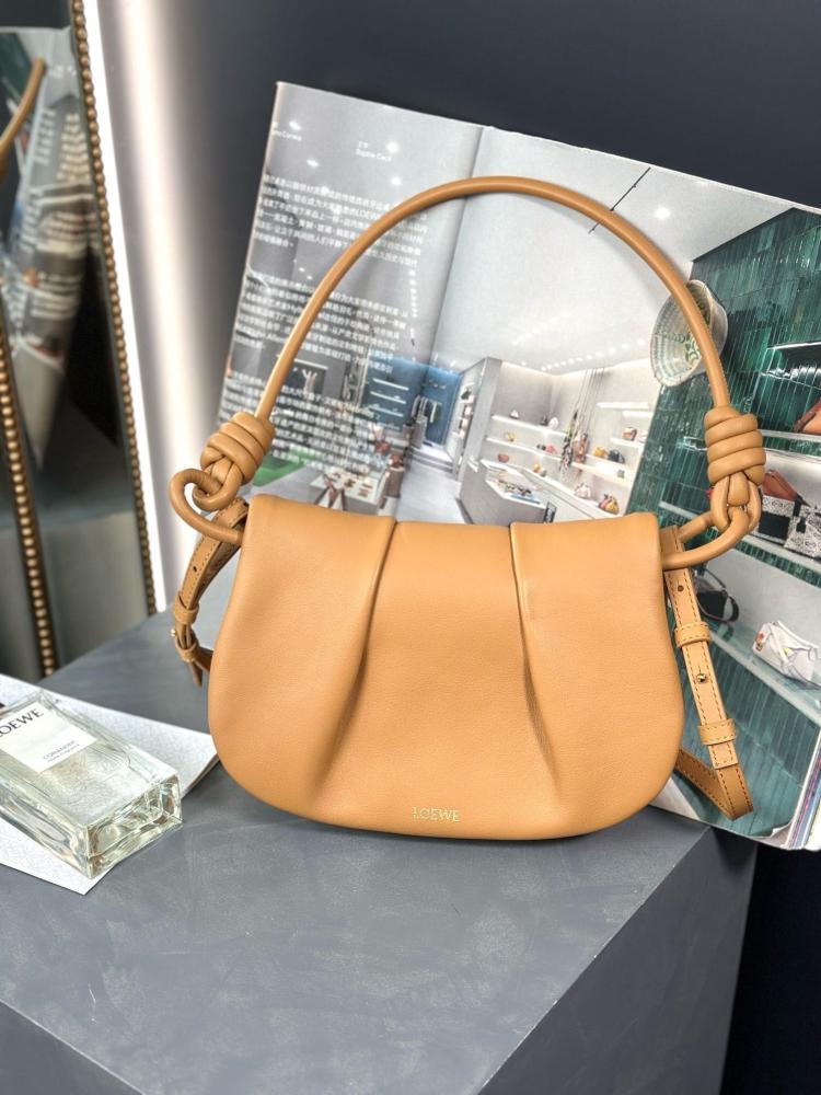شنطة كتف فاخرة من توقيع Loewe، مستوحاه من جلد نابا اللامع عالي الجودة، بتصميم أنيق يعكس البساطة العصرية. تتميز بحزام كتف مع عقدة مميزة قابلة للتعديل، مما يمنحك حرية التغيير في طريقة الحمل.