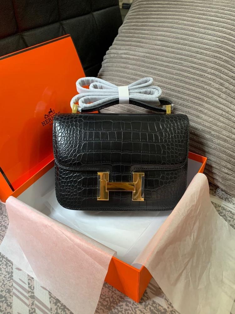 Hermès Constance 24 Black Alligator – قطعة نادرة وأنيقة بلمسة ذهبية، استثمار فاخر لكل عاشقة للتميز والأصالة.